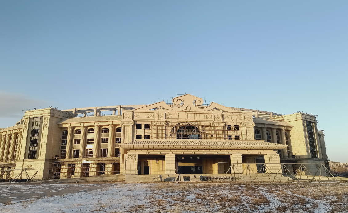 项目的主体及附属建筑、外部管网、GRC构件装饰工程、外立面石材安装以及主体防水和外立面涂料工程均已完工。钢结构的中心部分组装工作已完成,其余主要钢结构材料、玻璃幕墙材料也已全部到位,目前剩余钢结构装工作。