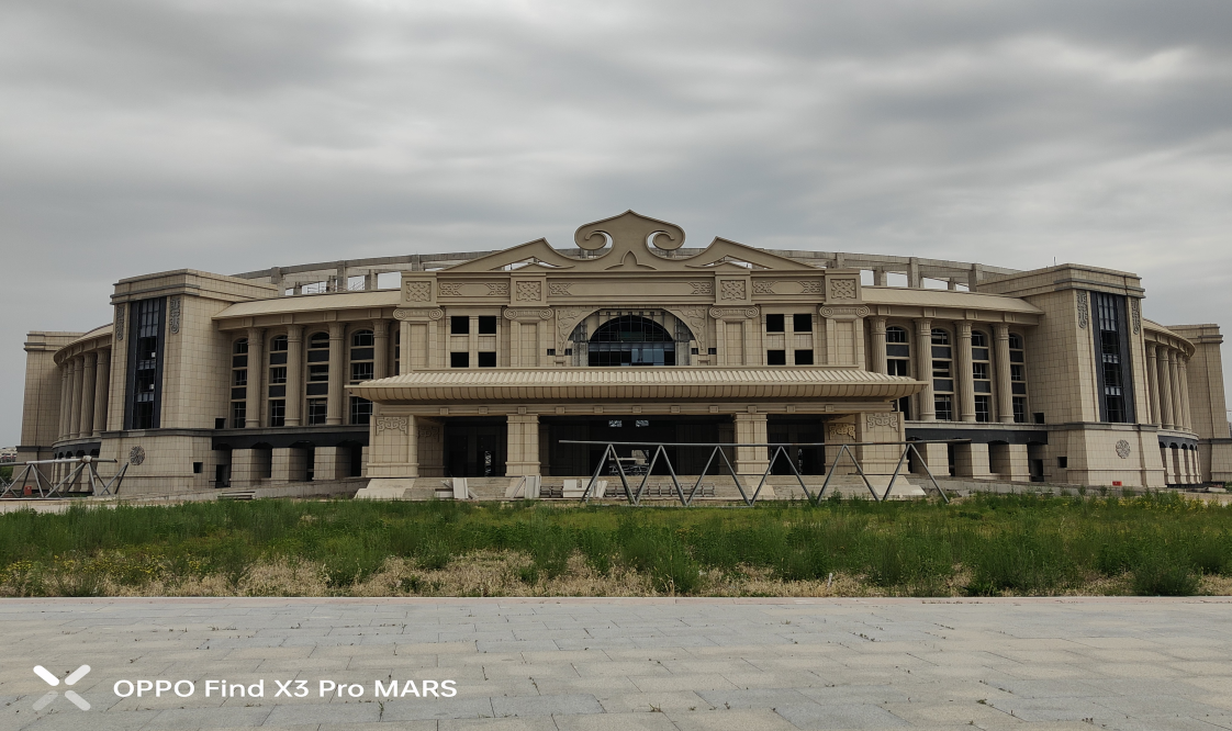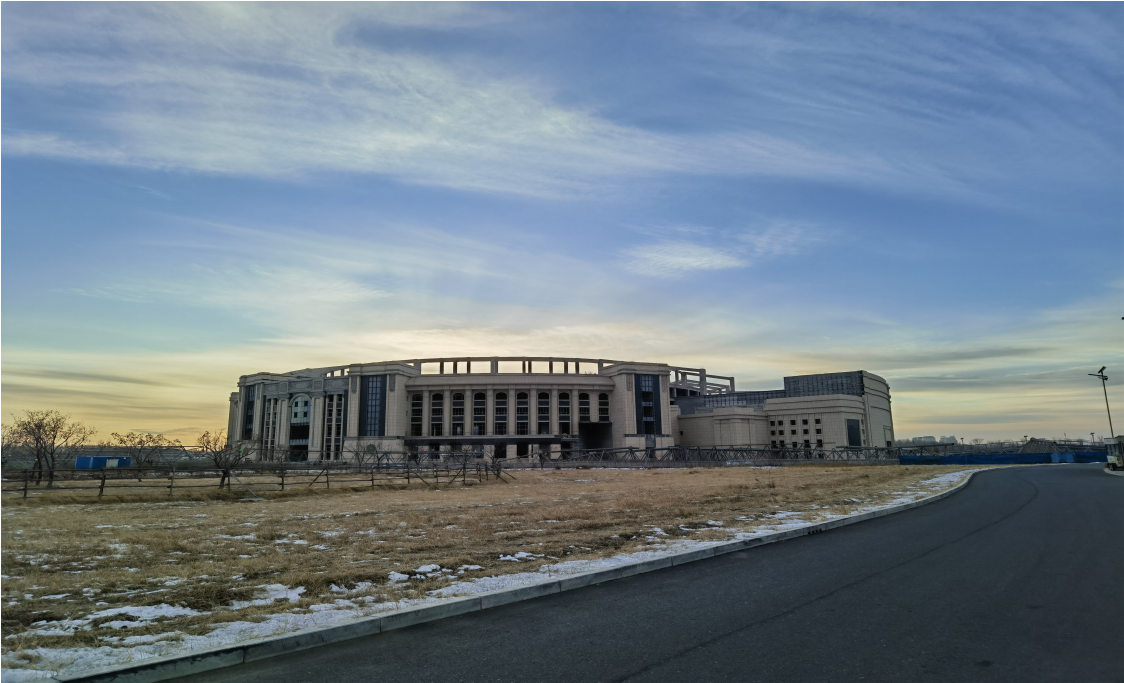 项目地上五层、地下一层,为框架结构,外装饰使用干挂石材,屋面为桁架及网架结构相结合的钢结构屋面,钢结构跨度目前为东北亚第一。